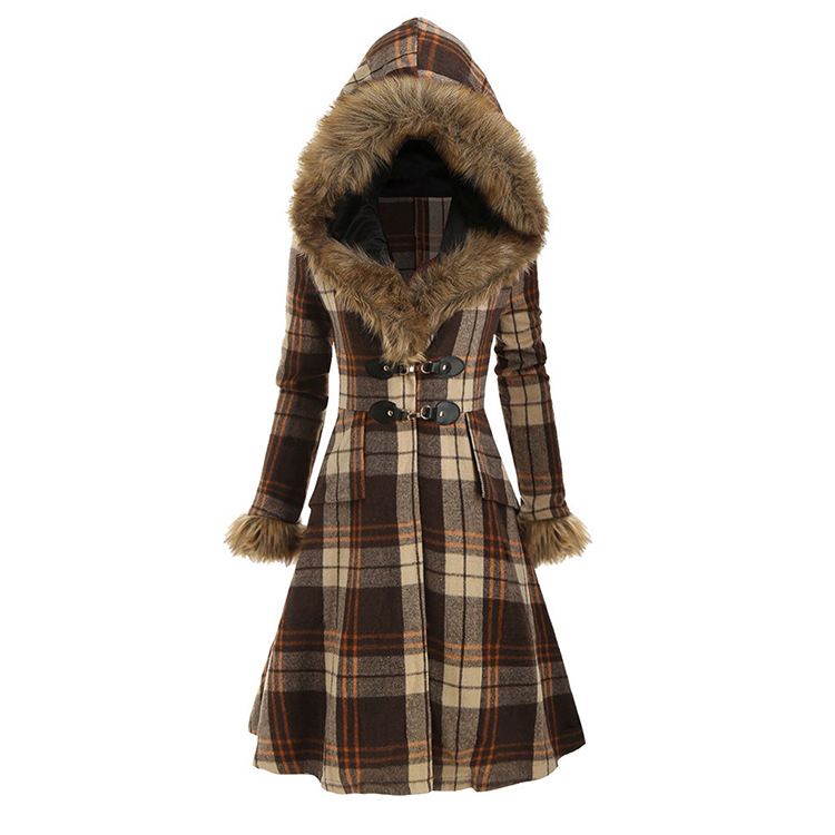 Be the first to review “Fashion women’s new style hooded fur alloy buckle slim-fit plaid long-sleeved woolen mid-length coat”