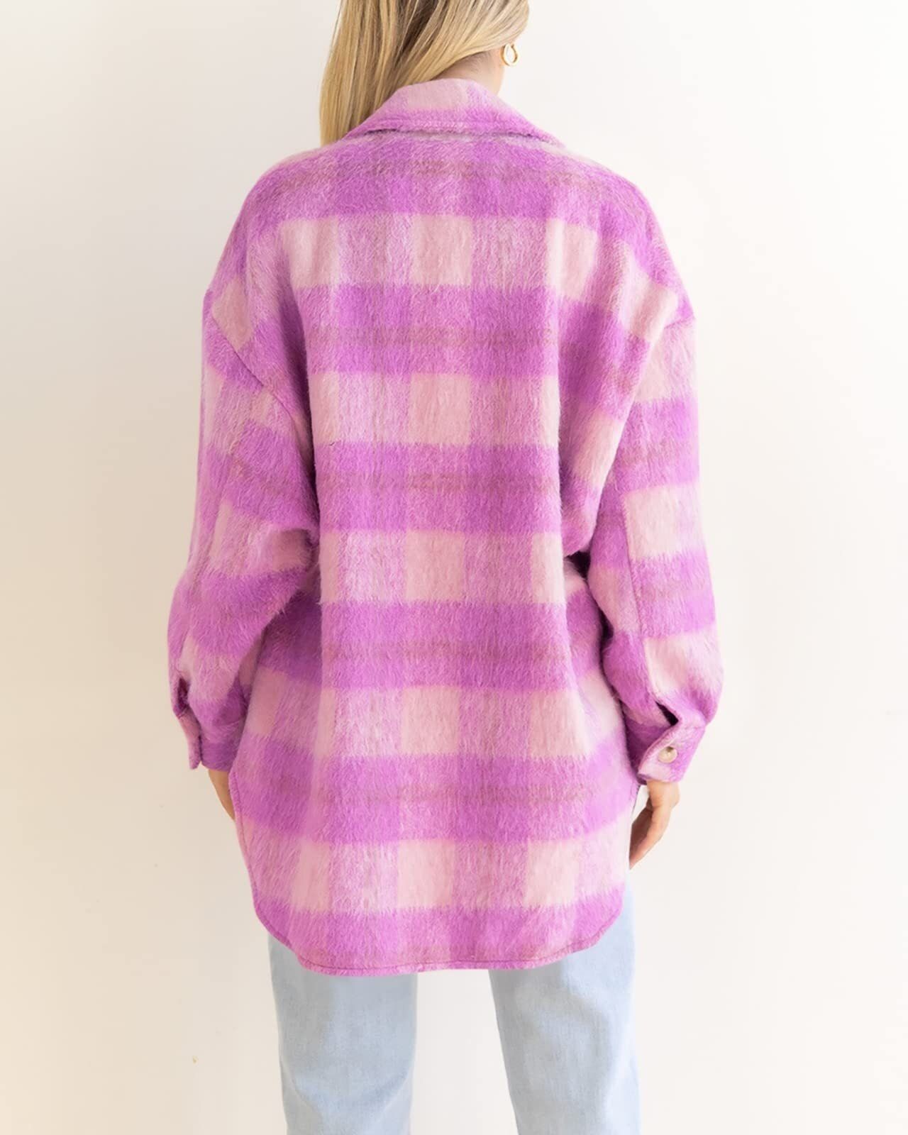 Women's Plaid Flannel Coat Woolen Thick JacketWomen's Plaid Flannel Coat Woolen Thick Jacket
